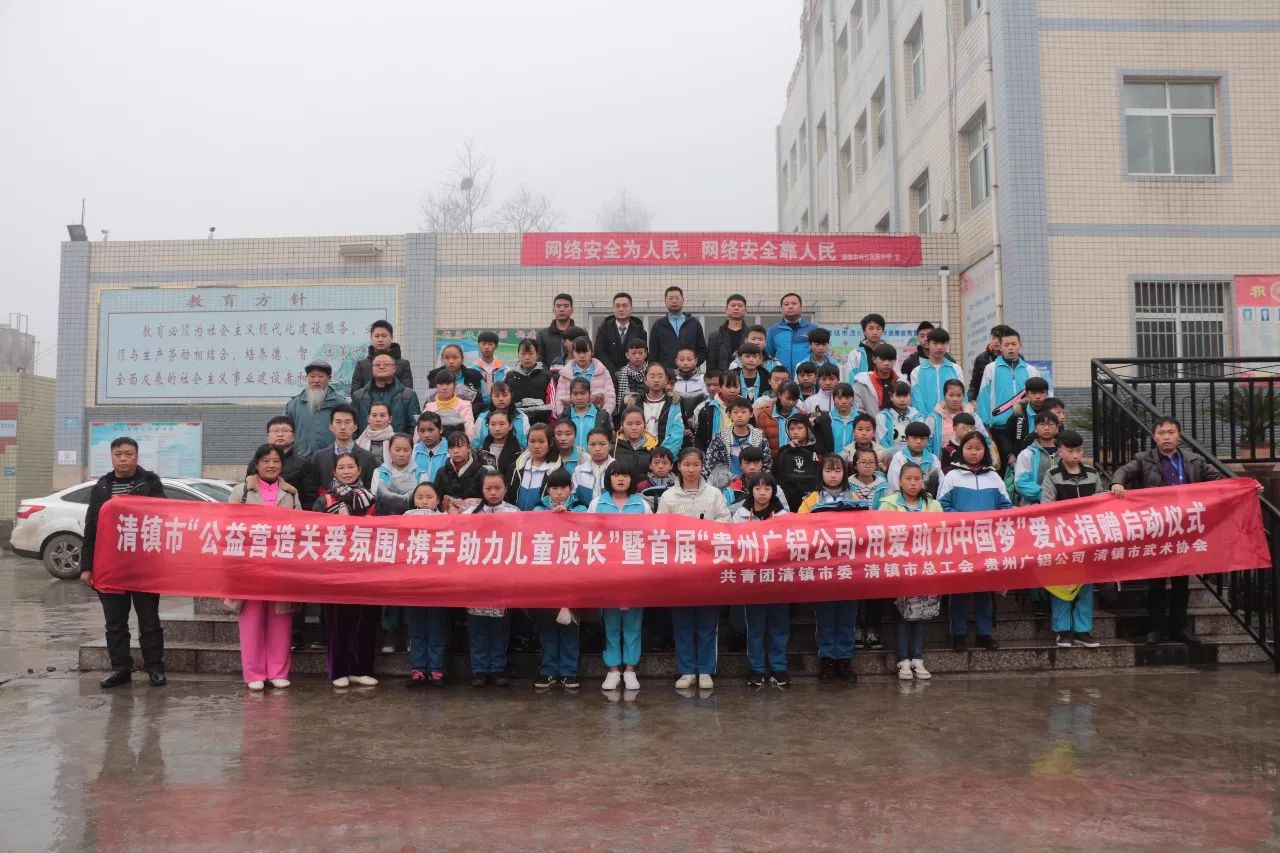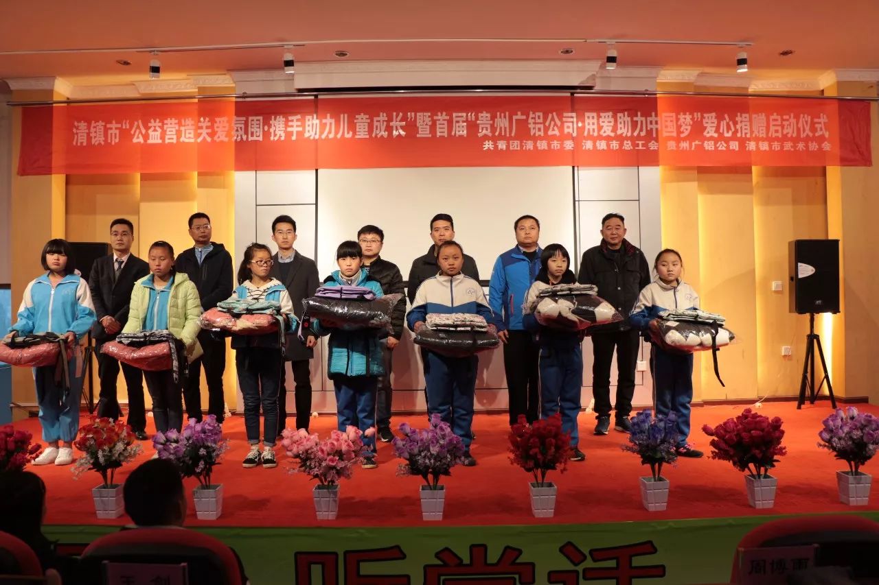 1月4日上午,共青團清鎮市委聯(lián)合市總工會(huì )、廣東省廣鋁公益基金會(huì )、貴州廣鋁公司、市武術(shù)協(xié)會(huì )在流長(cháng)民族中學(xué),舉行清鎮市“公益營(yíng)造關(guān)愛(ài)氛圍·攜手助力兒童成長(cháng)”暨首屆“貴州廣鋁公司·用愛(ài)助力中國夢(mèng)”愛(ài)心捐贈啟動(dòng)儀式,為留守兒童送去溫暖。