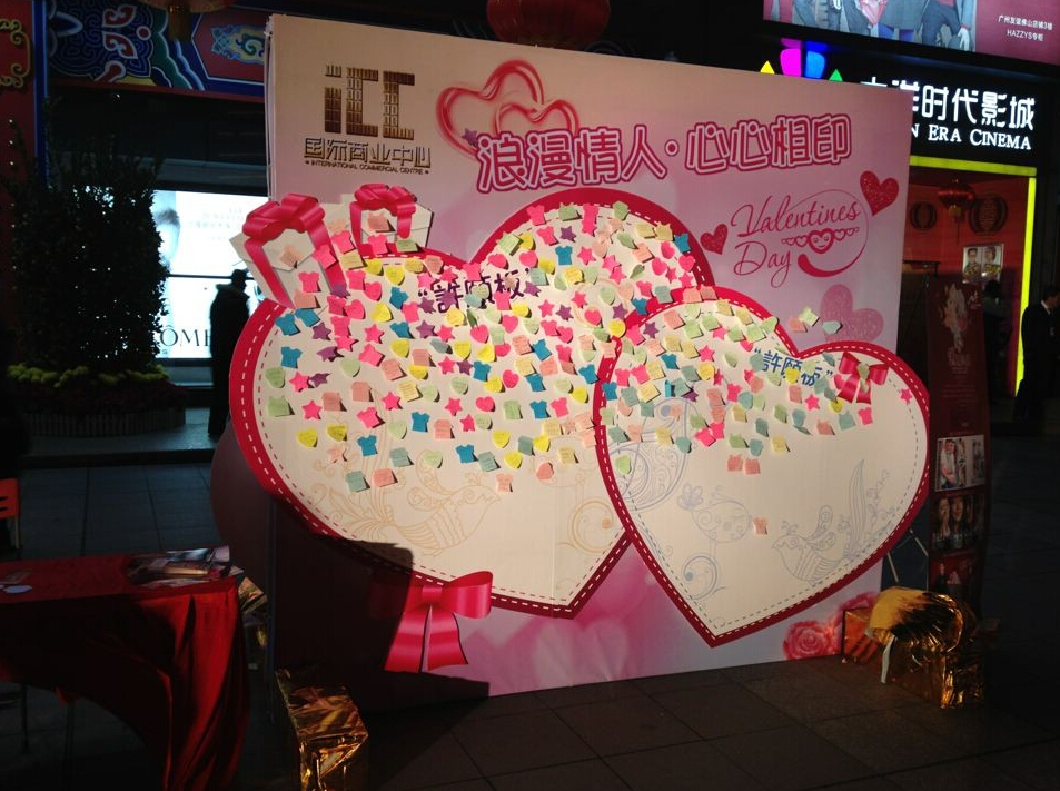 今年的元宵節與西方情人節為同一天,而下一個(gè)雙節同慶則是在19年后了。因此,我們特別設立了一個(gè)雙面的許愿心型墻,并在現場(chǎng)提供若干許愿紙條,大量的情侶、學(xué)生和職業(yè)人士都把自己的新年愿望寫(xiě)在許愿紙上,粘貼到許愿墻上,祈求新年心想事成、祈求有情人終成眷屬、祈求學(xué)業(yè)進(jìn)步、祈求更上一層樓!