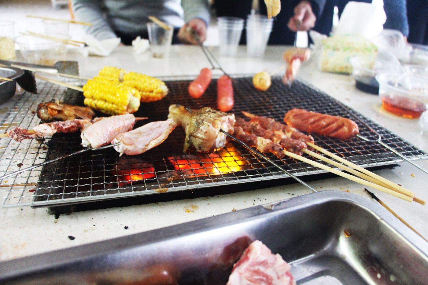 當食物擺滿(mǎn)桌面,各位燒烤達人已經(jīng)摩拳擦掌,迫不及待想要一展身手。各位吃貨也被彌漫周?chē)目救庀阋每谒绷?。一串串烤肉、一塊塊雞腿,更有肥美無(wú)比的生蠔,不僅消除了大家一周工作中的疲勞,也在美味中拉近了大家的距離。