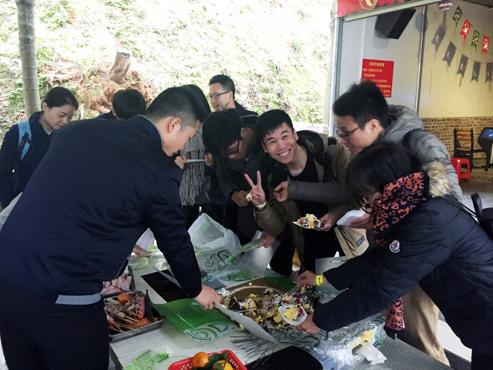 當天陰雨綿綿,寒風(fēng)來(lái)襲,即使與預想的明朗天氣大相徑庭,但仍然沒(méi)有影響員工們出游的好心情。中午,大巴從集團本部出發(fā),抵達大夫山森林公園。燒烤前,活動(dòng)負責人拿出精心準備的生日蛋糕,在現場(chǎng)為11月生日的壽星們慶生,讓大家參與了一次新奇的戶(hù)外慶生會(huì )。小小的蛋糕寄托了大家對壽星們的祝福。