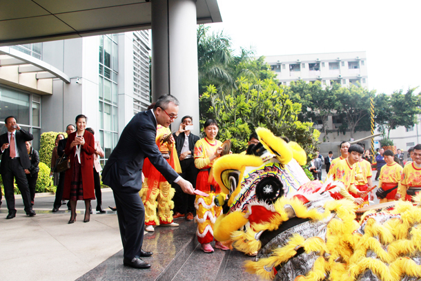 良辰吉時(shí),葉董事長(cháng)帶領(lǐng)干部員工共同祈福,隨后,葉鵬智董事長(cháng)、吳秋顏董事、吳作榮理事長(cháng)、夏文鋒監事長(cháng)、黃丹華董事、葉鵬勇董事分別為六頭祥獅點(diǎn)睛。
