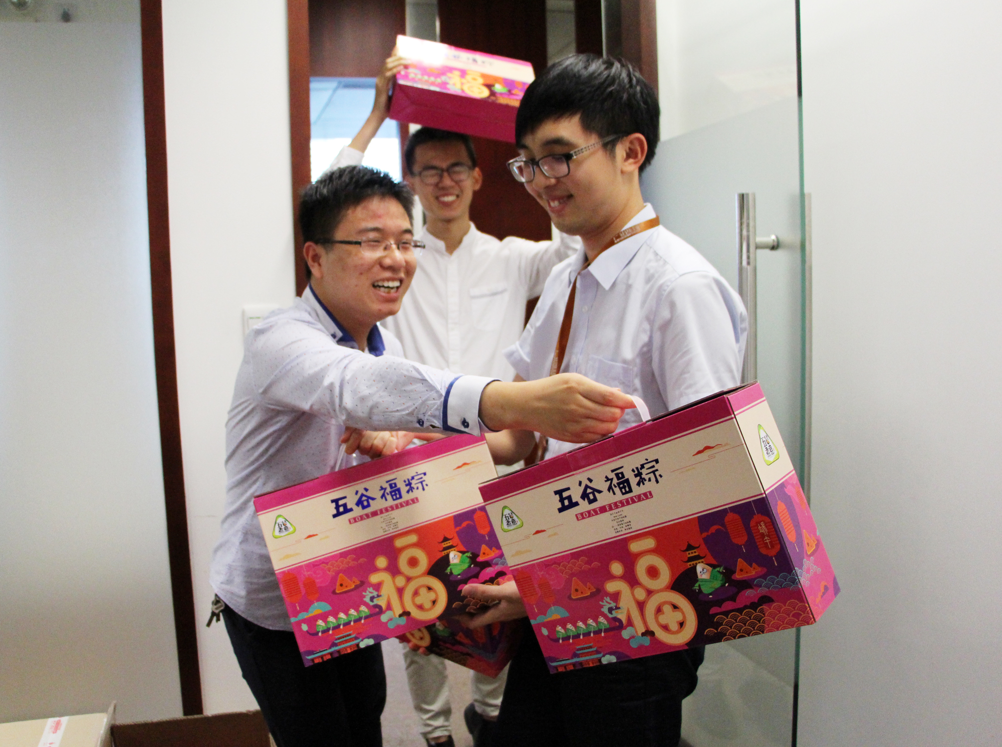 當天下午兩點(diǎn)整,整整十四個(gè)大箱子,滿(mǎn)滿(mǎn)的粽子禮盒出現在辦公室中,強烈的視覺(jué)效果引起了員工們的小小期待。