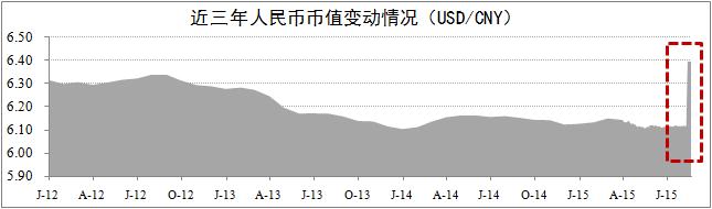 人民幣技術(shù)性貶值。央行于8月11日調整人民幣匯率中間價(jià)報價(jià)機制。截至8月20日,美元兌人民幣匯率上升至6.4,為近三年來(lái)的高點(diǎn),人民幣出現貶值現象。其中,較8月10日貶值4.6%,較8月11日貶值2.7%。此次人民幣貶值屬于技術(shù)操作層面問(wèn)題,主要目的在于消除人民幣中間價(jià)與市場(chǎng)匯率之間的偏差,為應對9月份美聯(lián)儲加息造成的系統性貶值做好準備。