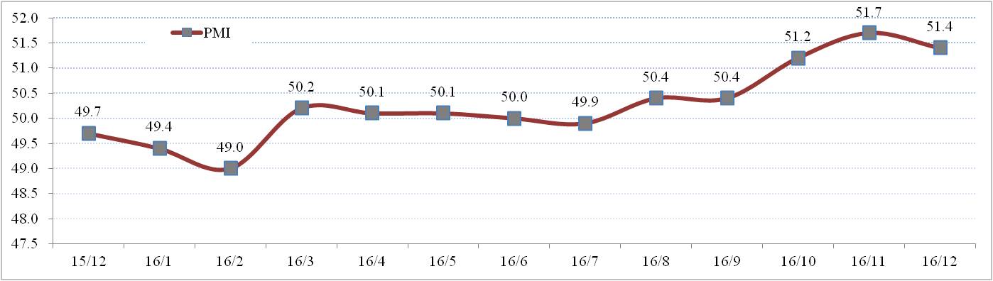 分析認為:從2016年P(guān)MI表現來(lái)看,顯示經(jīng)濟運行中的積極因素增多,經(jīng)濟下行壓力趨向減緩,企穩向好發(fā)展態(tài)勢較為明顯,為2017年經(jīng)濟穩定發(fā)展奠定了良好基礎。