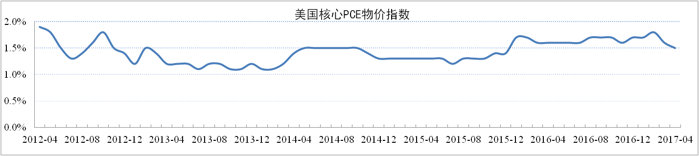美聯(lián)儲6月15日議息會(huì )議宣布加息25個(gè)基點(diǎn),聯(lián)邦基金利率從0.75%~1%調升到1%~1.25%,這是美聯(lián)儲今年以來(lái)第二次加息,預計年內還會(huì )加息一次。會(huì )議對2017年美國GDP增速的預測從2.1%上調至2.2%,將失業(yè)率預期從4.5%下調至4.3%,將2017年核心PCE通脹預測從1.9%下調至1.7%。