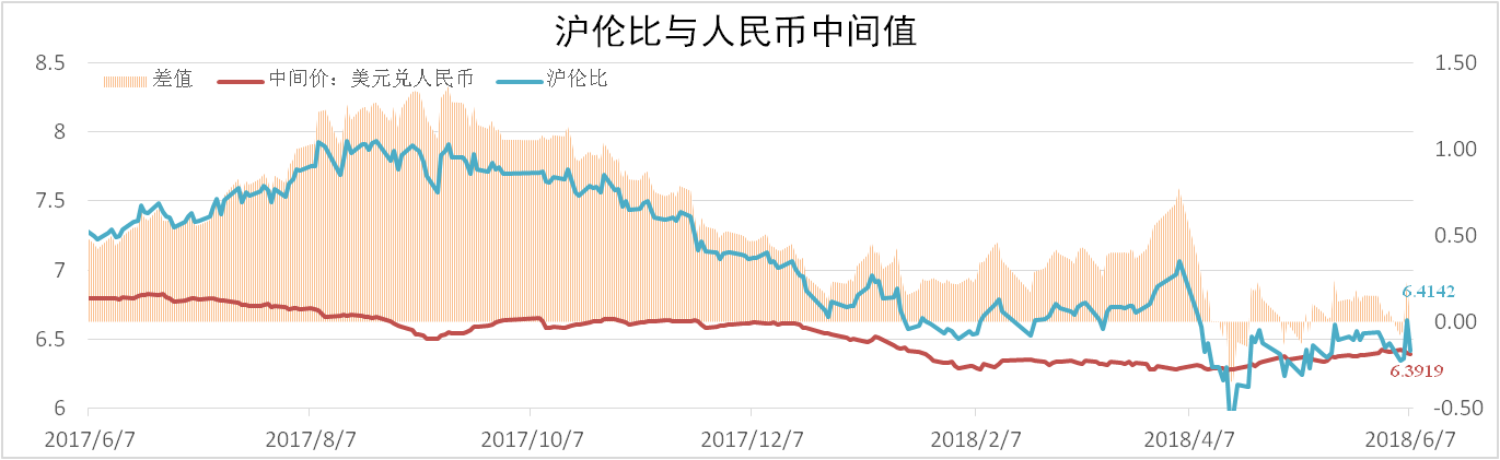發(fā)稿時(shí)間:2018-06-22截止到6月17日,LME三個(gè)月鋁價(jià)2337美元/噸,環(huán)比下降1.10%,理論LME鋁價(jià)2345.16美元/噸,環(huán)比上漲1.27%。滬倫比為6.4142,同期人民幣匯率中間價(jià)為6.3919,二者差值由正轉負。