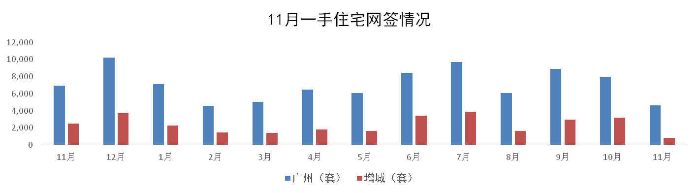 11月,廣州一手住宅網(wǎng)簽量成交4,657套,環(huán)比下跌42%。其中增城市場(chǎng)11月一手住宅網(wǎng)簽成交863套,環(huán)比下跌73%,成交面積為9.11萬(wàn)m² 。